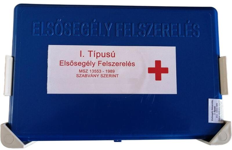 Elsősegély doboz jogszabályban előírt tartalommal munkahelyi elsősegélyként I. típus 30 főig falra rögzíthető kerettel.