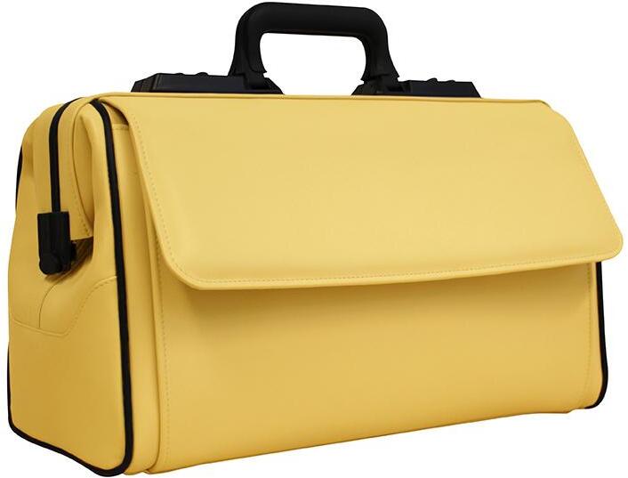 Dürasol Rusticana 7008 – Sárga bőr orvosi táska, nagy, 2 zsebes kivitelA Dürasol Rusticana 7008 a professzionális megjelenés és a funkcionalitás tökéletes kombinációja. Élénk sárga színével azonnal felismerhető, miközben a valódi bőr anyag garantálja a tartósságot és a hosszú élettartamot. A nagy, két zsebes belső kialakítás lehetővé teszi az orvosi eszközök, dokumentumok és műszerek átlátható rendszerezését, így minden szükséges felszerelés kéznél van, amikor szükség van rá. A táska stabil fém zárakkal és megerősített fogantyúval készült, amelyek biztosítják a biztonságos és kényelmes használatot. A belső tér praktikus elválasztókkal rendelkezik, így az eszközök rendezett módon helyezhetők el, a mosható bélés pedig higiénikus és könnyen tisztán tartható. A Dürasol Rusticana 7008 ideális választás minden egészségügyi szakember számára – legyen szó orvosokról, ápolókról, mentősökről vagy mobil rendelőkről. A sárga szín és a klasszikus Rusticana dizájn nemcsak stílusos, hanem a gyors azonosíthatóságot is segíti, így minden helyzetben praktikus és funkcionális megoldást nyújt. Főbb jellemzők: